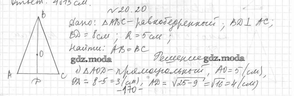 ОТВЕТ на задание № 20 Учебник по Геометрии 8 класс Мерзляк Алгоритм успеха Углубленный уровень