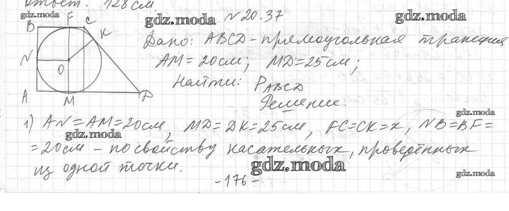 ОТВЕТ на задание № 37 Учебник по Геометрии 8 класс Мерзляк Алгоритм успеха Углубленный уровень
