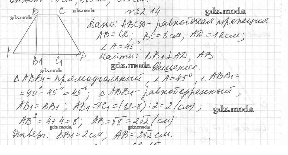 ОТВЕТ на задание № 14 Учебник по Геометрии 8 класс Мерзляк Алгоритм успеха Углубленный уровень
