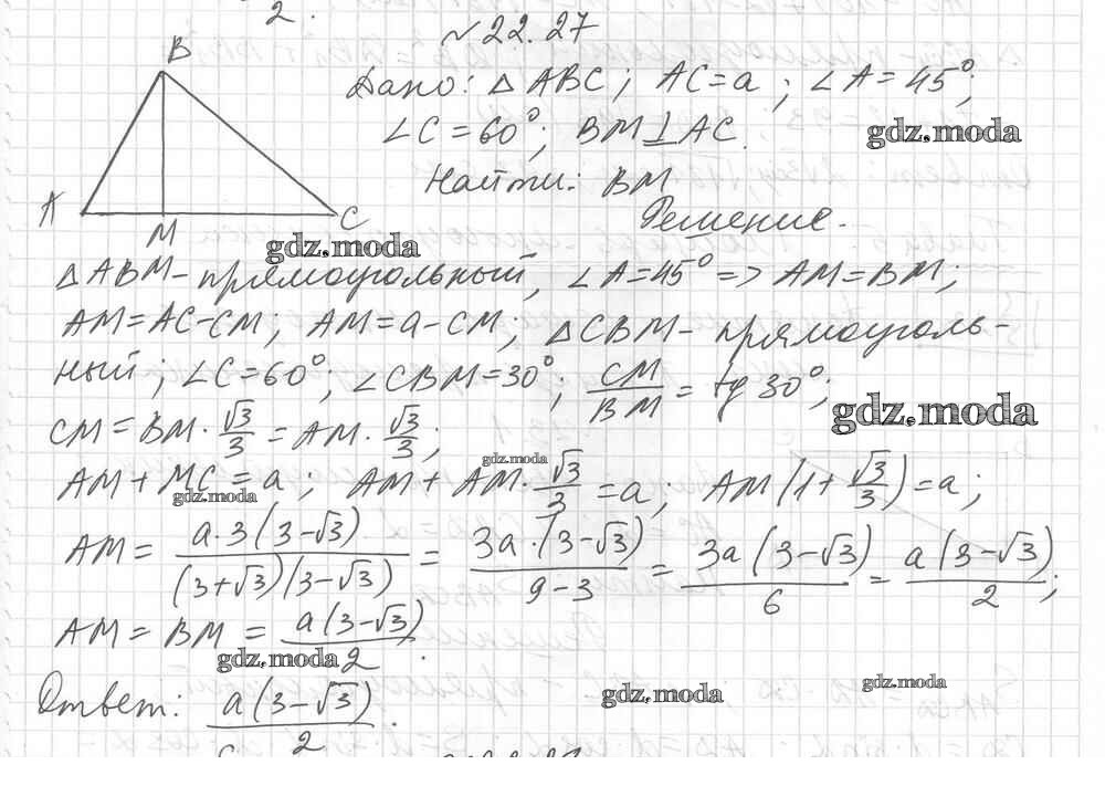 ОТВЕТ на задание № 27 Учебник по Геометрии 8 класс Мерзляк Алгоритм успеха Углубленный уровень