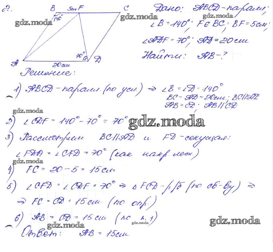ГДЗ решение к заданию № 2 Геометрия 8 класс Дидактические материалы Зив Б.Г. Просвещение 2016 ФГОС бесплатно на гдз.мода!
