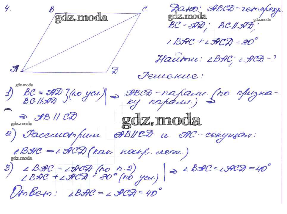ГДЗ решение к заданию № 4 Геометрия 8 класс Дидактические материалы Зив Б.Г. Просвещение 2016 ФГОС бесплатно на гдз.мода!