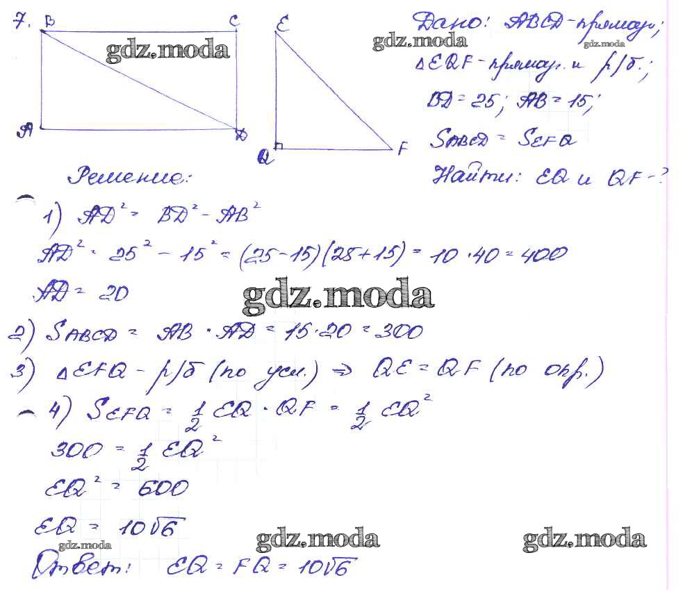 ГДЗ решение к заданию № 7 Геометрия 8 класс Дидактические материалы Зив Б.Г. Просвещение 2016 ФГОС бесплатно на гдз.мода!