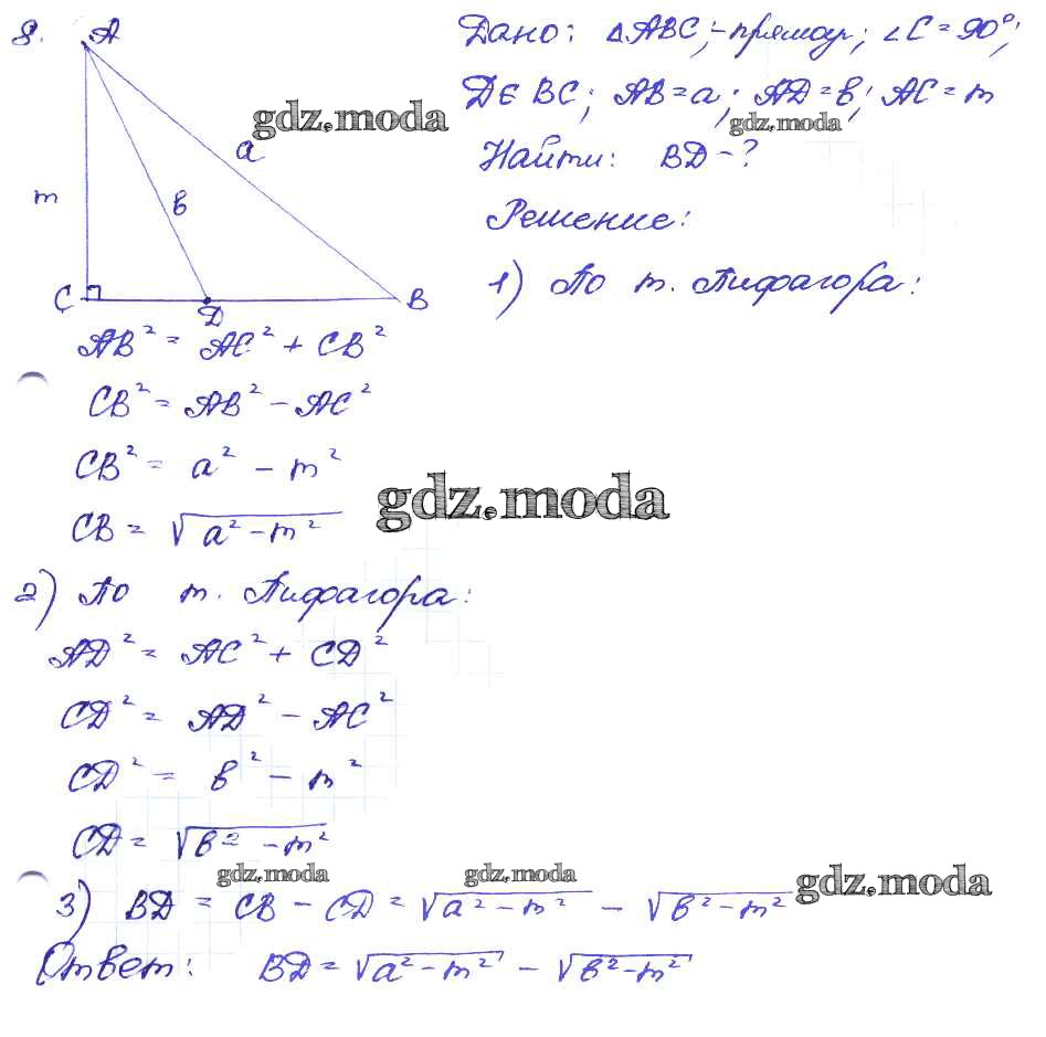 ГДЗ решение к заданию № 8 Геометрия 8 класс Дидактические материалы Зив Б.Г. Просвещение 2016 ФГОС бесплатно на гдз.мода!