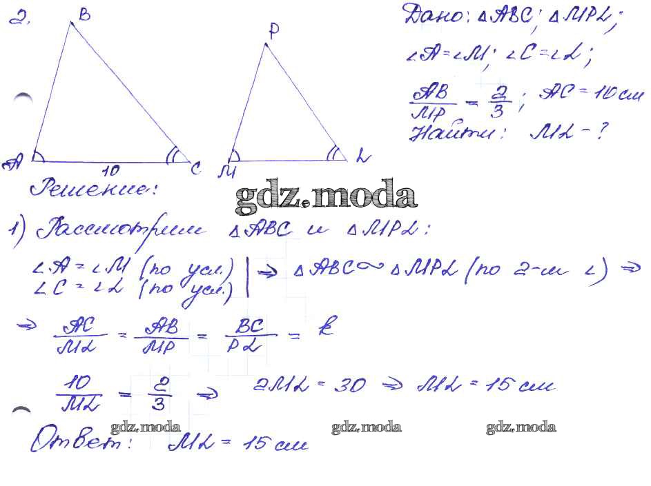 ГДЗ решение к заданию № 2 Геометрия 8 класс Дидактические материалы Зив Б.Г. Просвещение 2016 ФГОС бесплатно на гдз.мода!