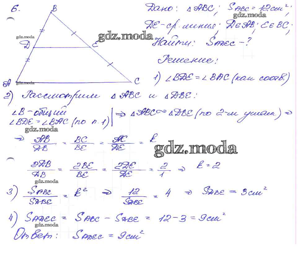 ГДЗ решение к заданию № 6 Геометрия 8 класс Дидактические материалы Зив Б.Г. Просвещение 2016 ФГОС бесплатно на гдз.мода!