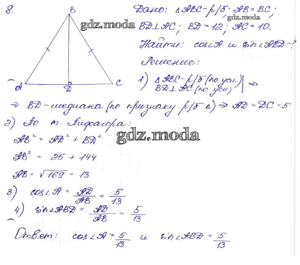 ОТВЕТ на задание № 8 Дидактические материалы по Геометрии 8 класс Зив