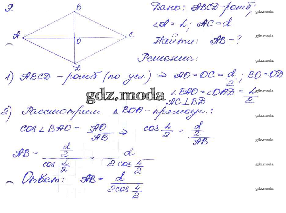 ОТВЕТ на задание № 9 Дидактические материалы по Геометрии 8 класс Зив