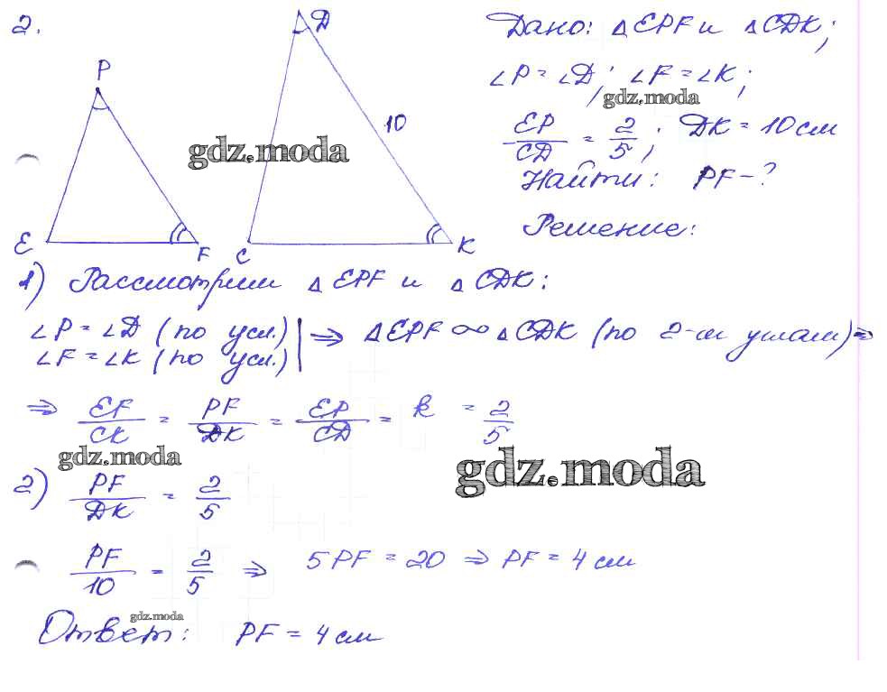ГДЗ решение к заданию № 2 Геометрия 8 класс Дидактические материалы Зив Б.Г. Просвещение 2016 ФГОС бесплатно на гдз.мода!