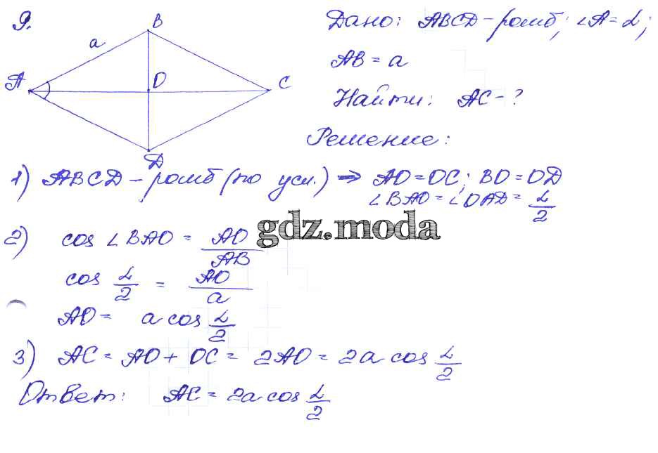 ОТВЕТ на задание № 9 Дидактические материалы по Геометрии 8 класс Зив
