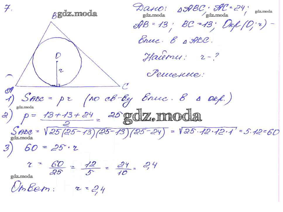 ОТВЕТ на задание № 7 Дидактические материалы по Геометрии 8 класс Зив