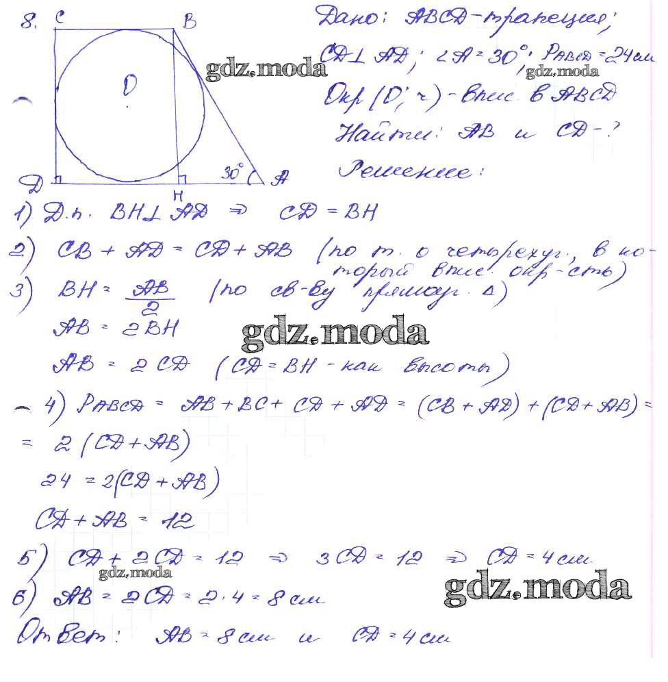 ОТВЕТ на задание № 8 Дидактические материалы по Геометрии 8 класс Зив