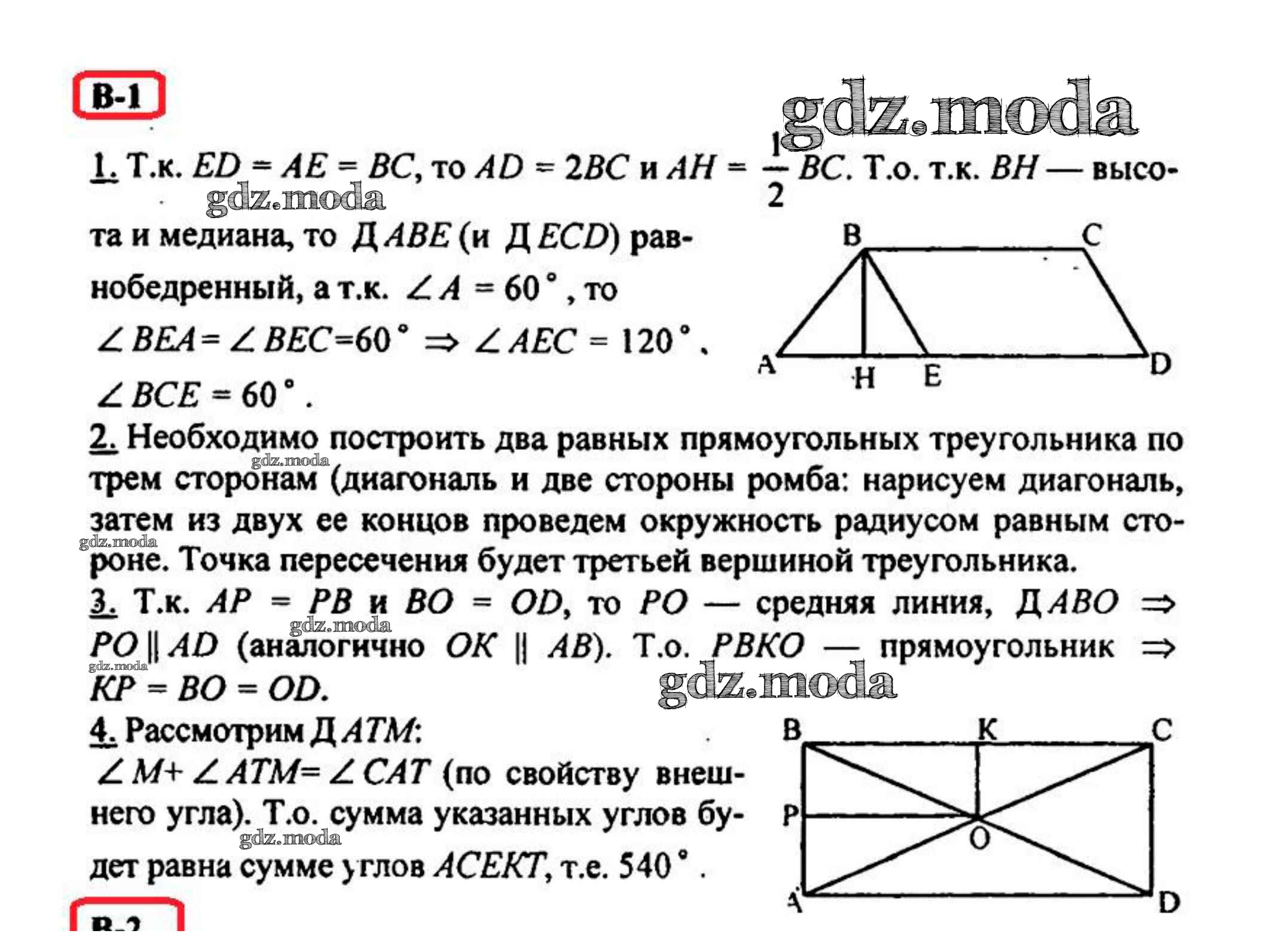 ОТВЕТ на задание № Вариант 1 Дидактические материалы по Геометрии 8 класс Зив