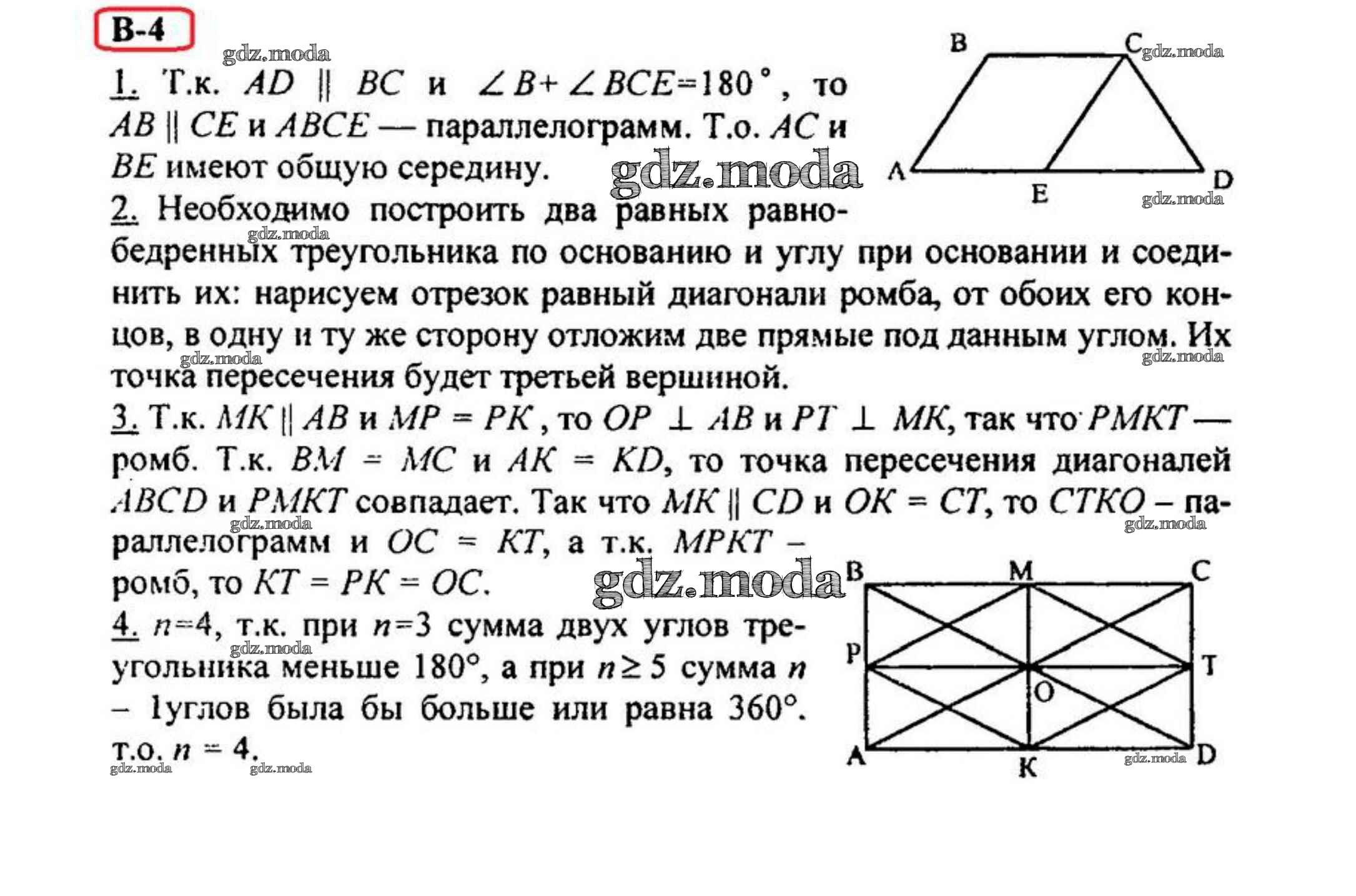 ОТВЕТ на задание № Вариант 4 Дидактические материалы по Геометрии 8 класс Зив