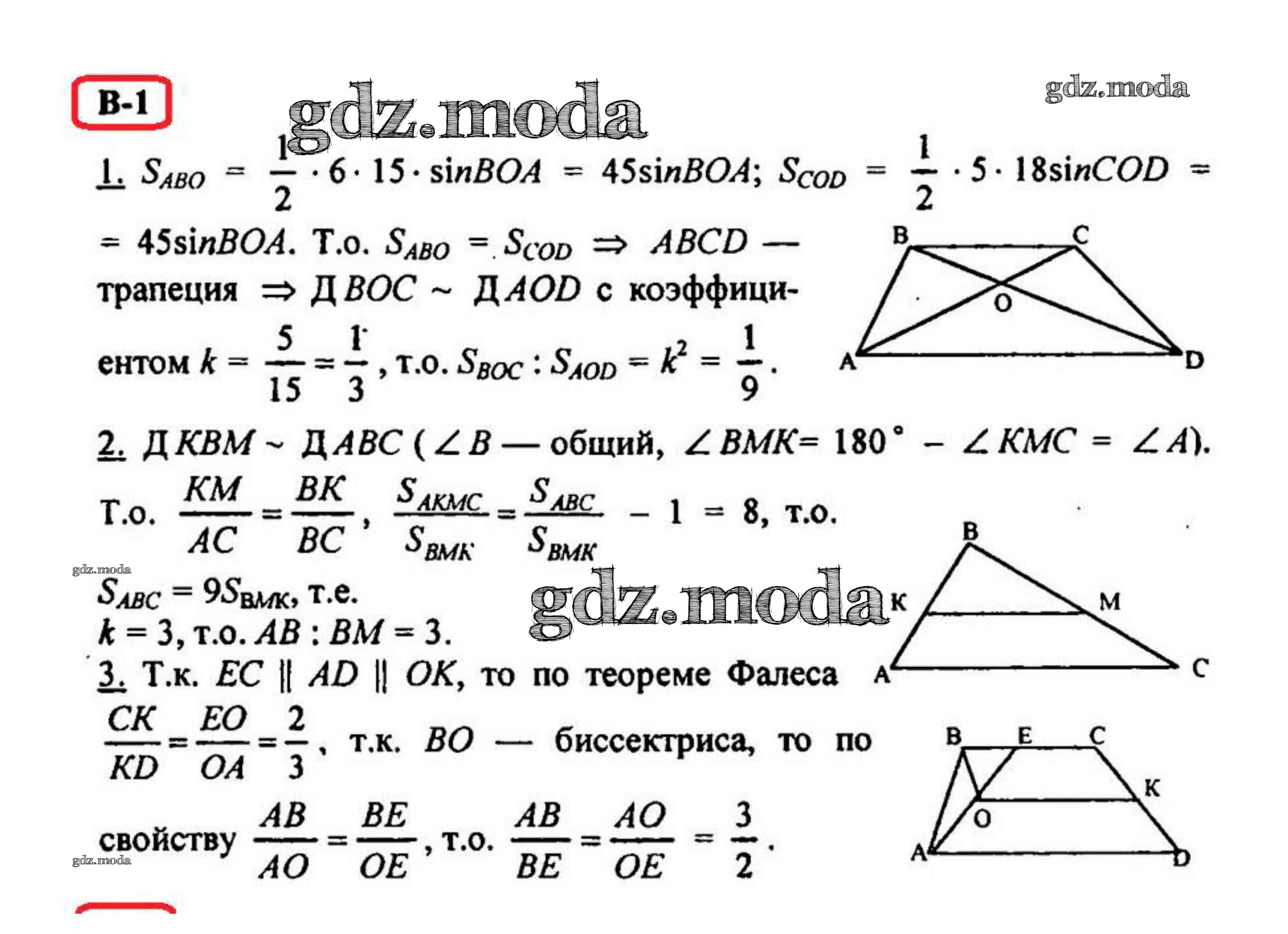 ОТВЕТ на задание № Вариант 1 Дидактические материалы по Геометрии 8 класс Зив