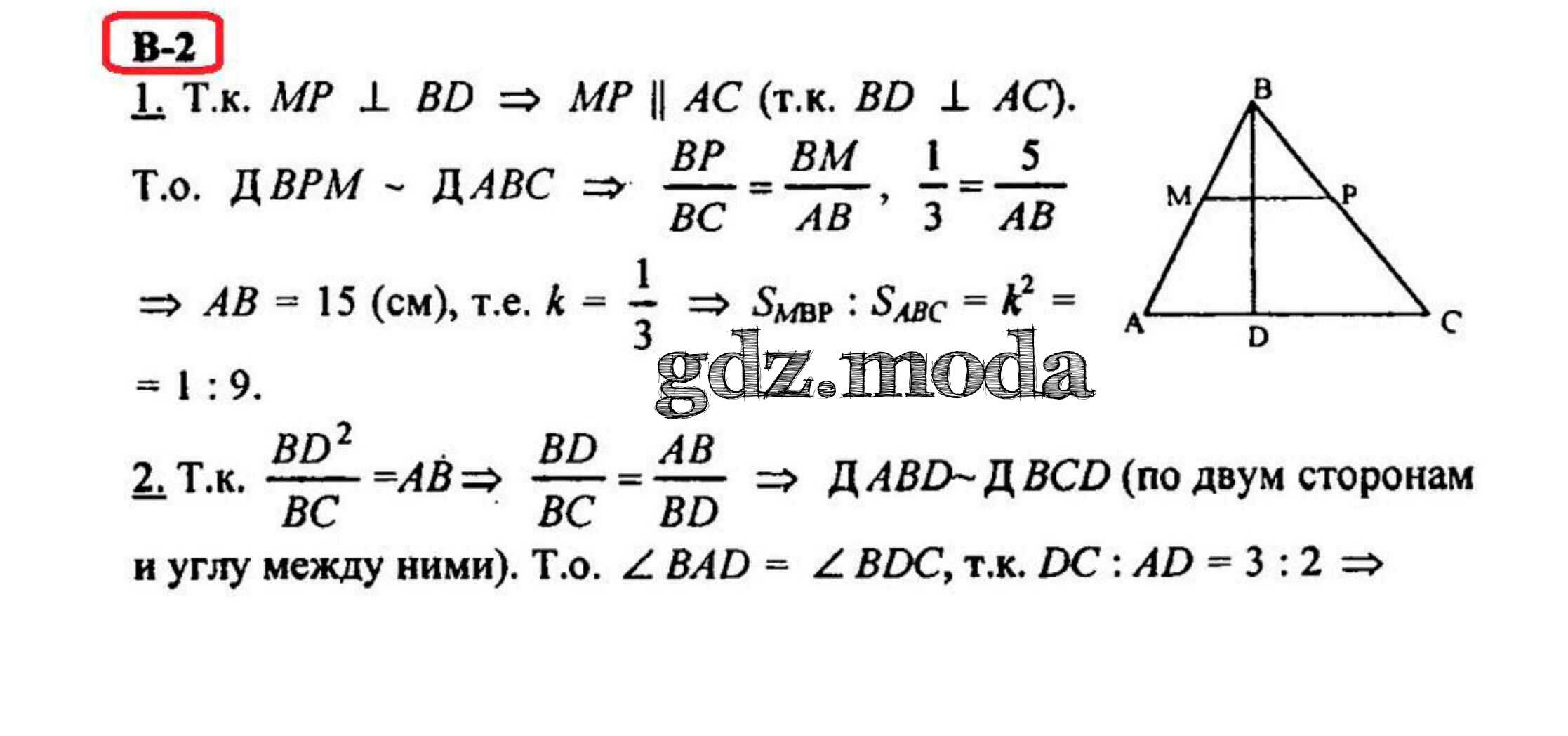 ОТВЕТ на задание № Вариант 2 Дидактические материалы по Геометрии 8 класс Зив