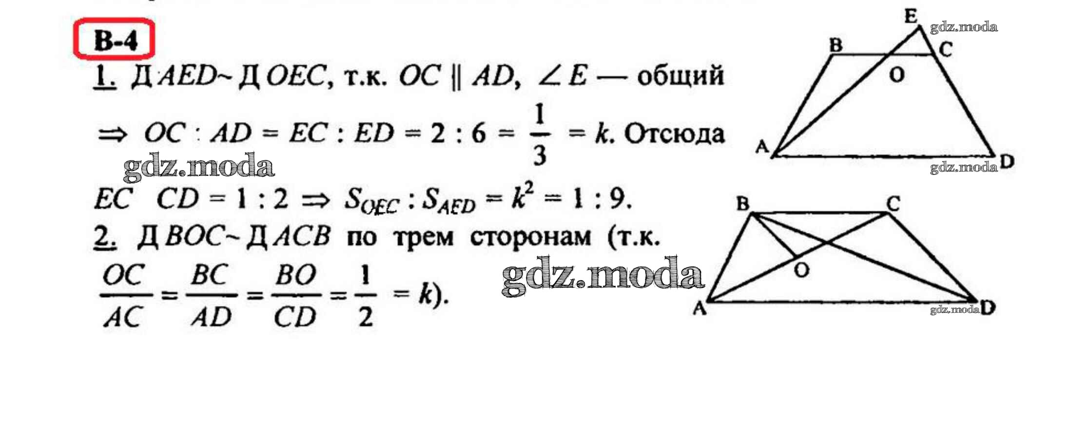 ОТВЕТ на задание № Вариант 4 Дидактические материалы по Геометрии 8 класс Зив