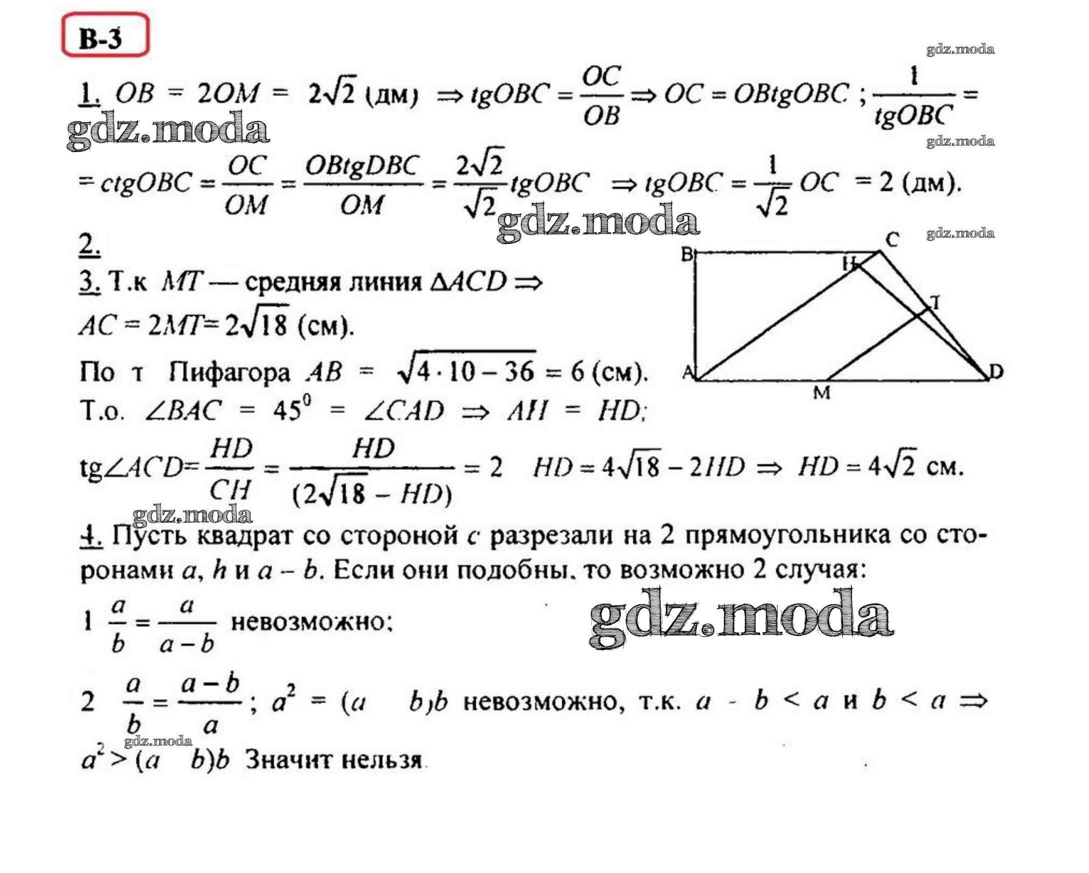 ОТВЕТ на задание № Вариант 3 Дидактические материалы по Геометрии 8 класс Зив