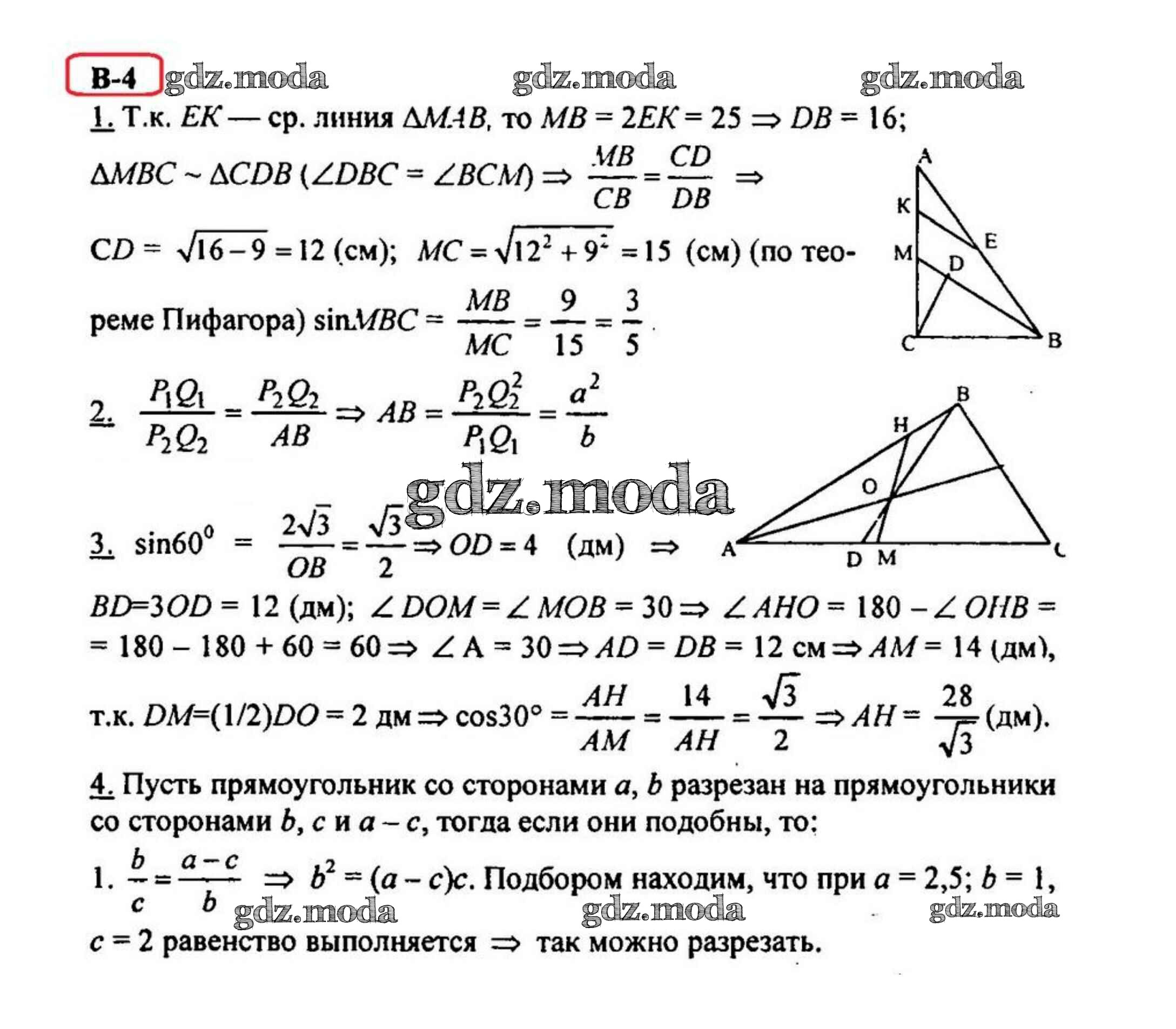 ОТВЕТ на задание № Вариант 4 Дидактические материалы по Геометрии 8 класс Зив