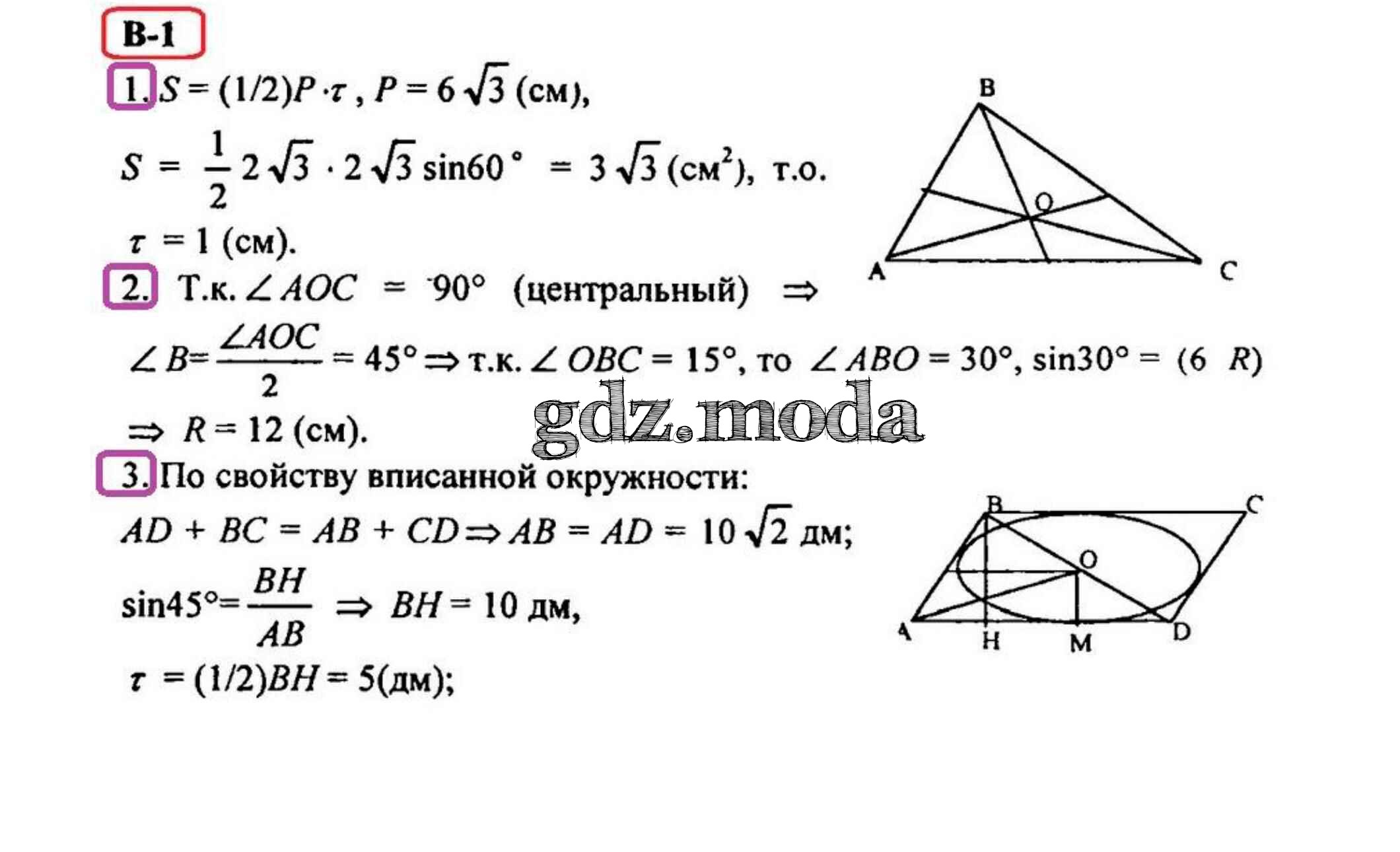 ОТВЕТ на задание № Вариант 1 Дидактические материалы по Геометрии 8 класс Зив