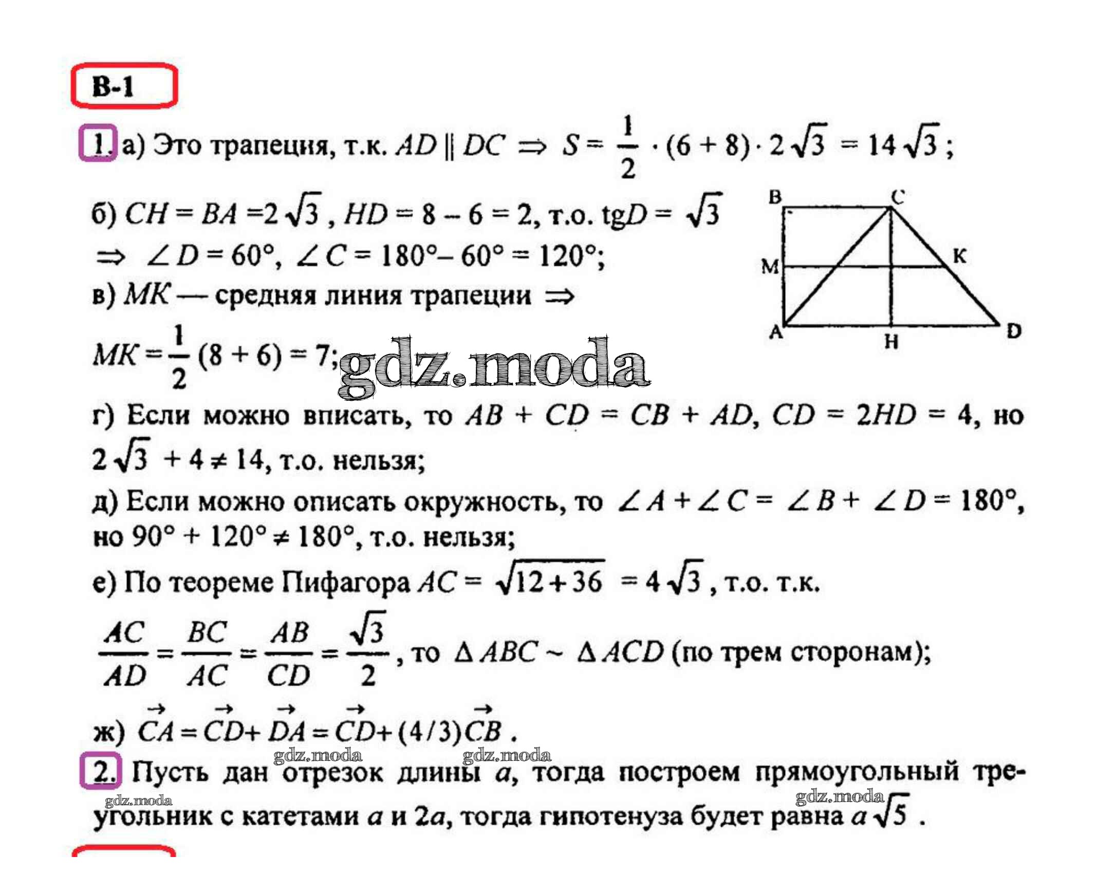 ОТВЕТ на задание № Вариант 1 Дидактические материалы по Геометрии 8 класс Зив
