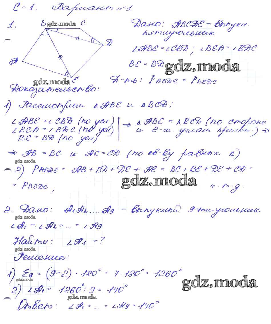 ГДЗ решение к заданию № вариант-1 Геометрия 8 класс Дидактические материалы Зив Б.Г. Просвещение 2016 ФГОС бесплатно на гдз.мода!