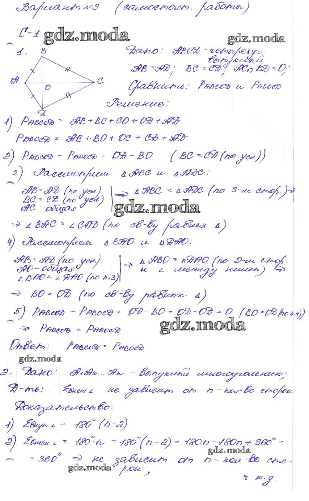 ГДЗ решение к заданию № вариант-3 Геометрия 8 класс Дидактические материалы Зив Б.Г. Просвещение 2016 ФГОС бесплатно на гдз.мода!