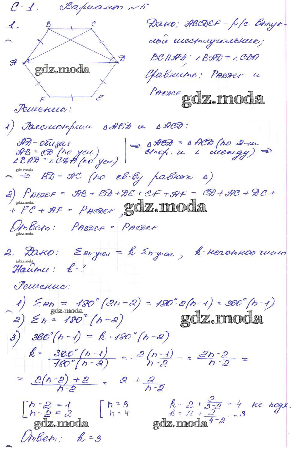 ГДЗ решение к заданию № вариант-5 Геометрия 8 класс Дидактические материалы Зив Б.Г. Просвещение 2016 ФГОС бесплатно на гдз.мода!