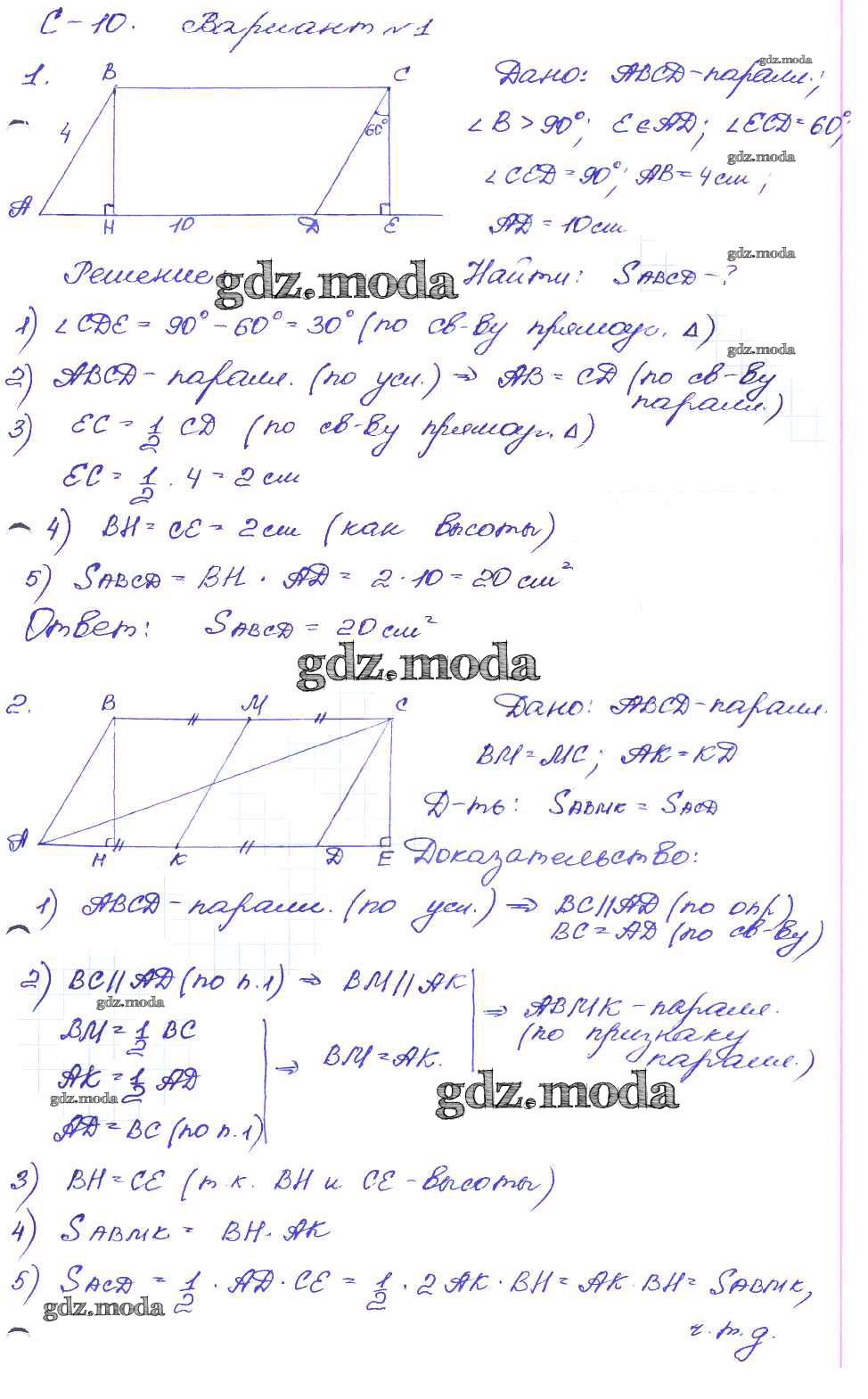 ГДЗ решение к заданию № вариант-1 Геометрия 8 класс Дидактические материалы Зив Б.Г. Просвещение 2016 ФГОС бесплатно на гдз.мода!