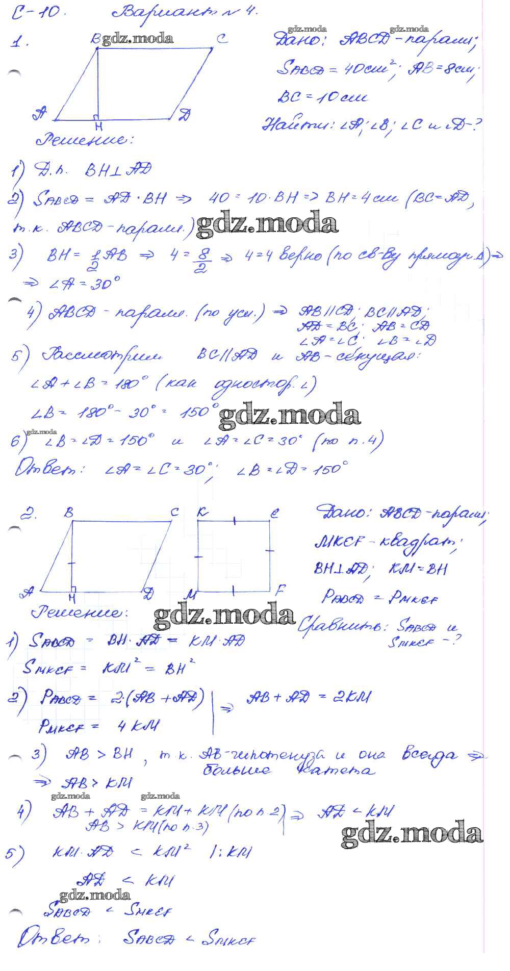 ГДЗ решение к заданию № вариант-4 Геометрия 8 класс Дидактические материалы Зив Б.Г. Просвещение 2016 ФГОС бесплатно на гдз.мода!