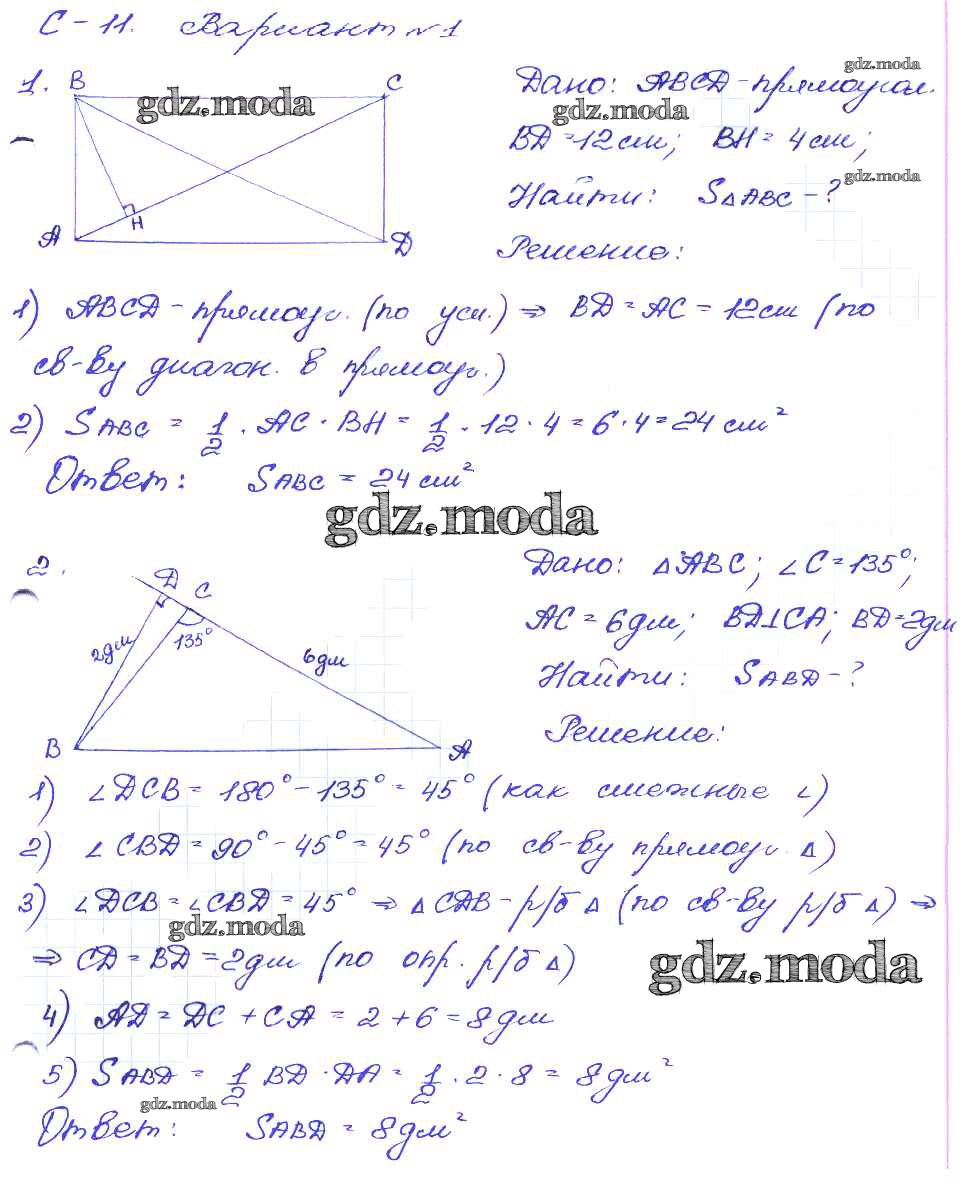 ГДЗ решение к заданию № вариант-1 Геометрия 8 класс Дидактические материалы Зив Б.Г. Просвещение 2016 ФГОС бесплатно на гдз.мода!