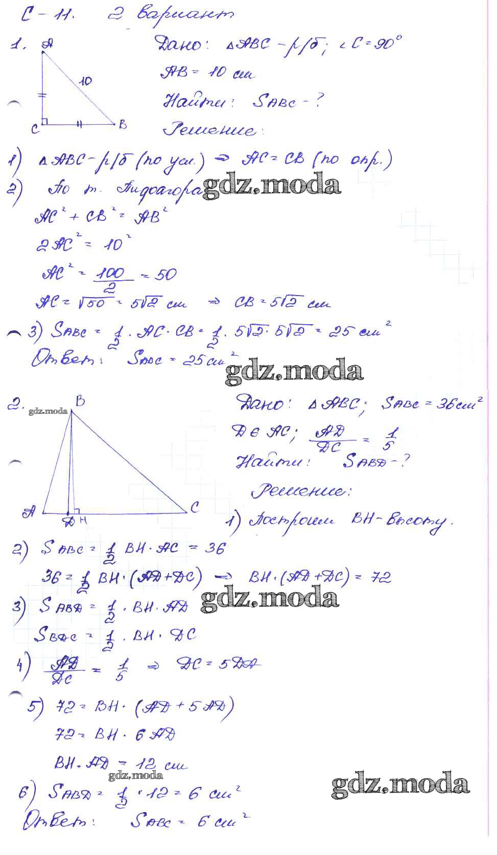 ГДЗ решение к заданию № вариант-2 Геометрия 8 класс Дидактические материалы Зив Б.Г. Просвещение 2016 ФГОС бесплатно на гдз.мода!