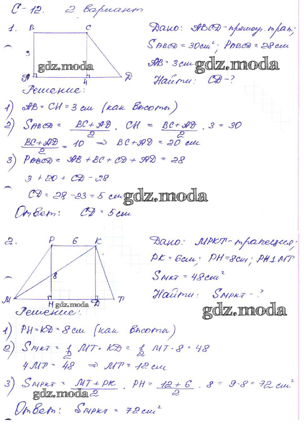 ГДЗ решение к заданию № вариант-2 Геометрия 8 класс Дидактические материалы Зив Б.Г. Просвещение 2016 ФГОС бесплатно на гдз.мода!
