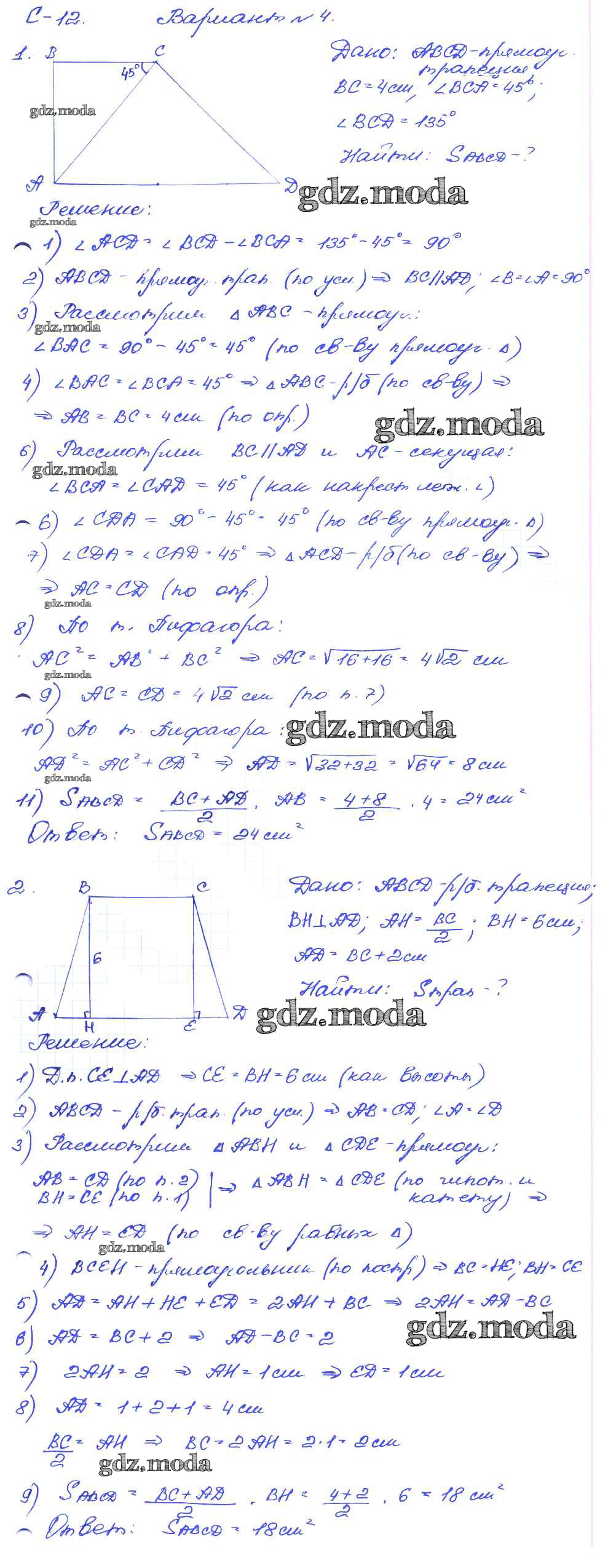 ГДЗ решение к заданию № вариант-4 Геометрия 8 класс Дидактические материалы Зив Б.Г. Просвещение 2016 ФГОС бесплатно на гдз.мода!