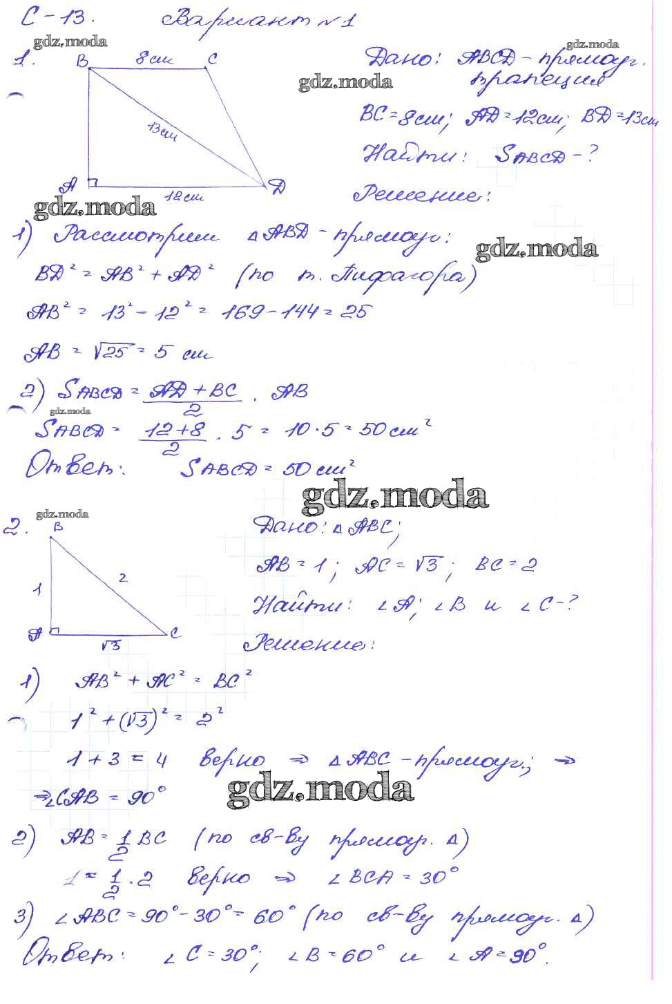 ГДЗ решение к заданию № вариант-1 Геометрия 8 класс Дидактические материалы Зив Б.Г. Просвещение 2016 ФГОС бесплатно на гдз.мода!