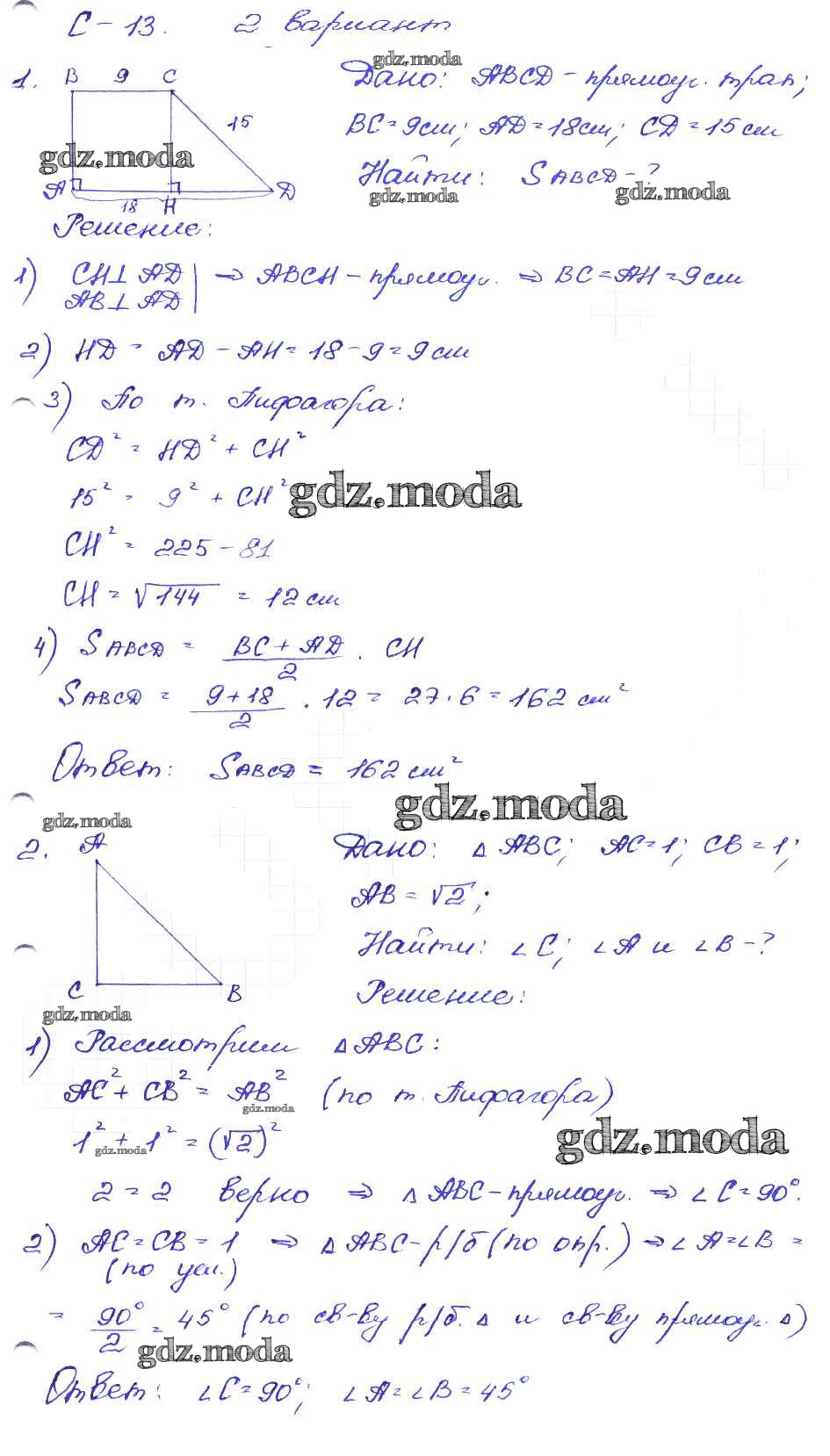 ГДЗ решение к заданию № вариант-2 Геометрия 8 класс Дидактические материалы Зив Б.Г. Просвещение 2016 ФГОС бесплатно на гдз.мода!