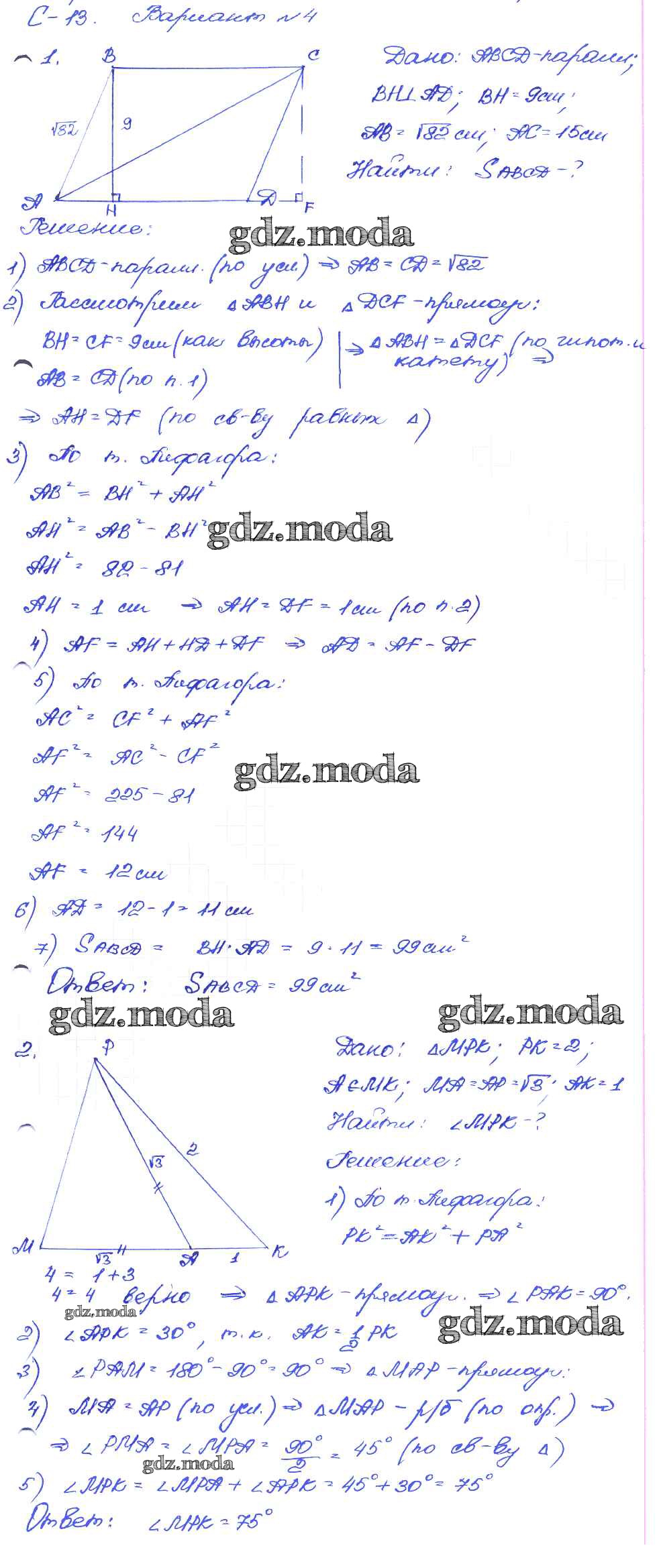 ГДЗ решение к заданию № вариант-4 Геометрия 8 класс Дидактические материалы Зив Б.Г. Просвещение 2016 ФГОС бесплатно на гдз.мода!