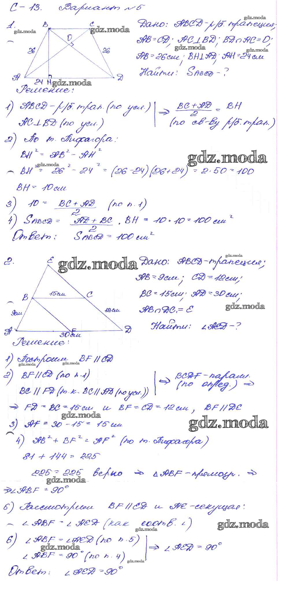 ГДЗ решение к заданию № вариант-5 Геометрия 8 класс Дидактические материалы Зив Б.Г. Просвещение 2016 ФГОС бесплатно на гдз.мода!