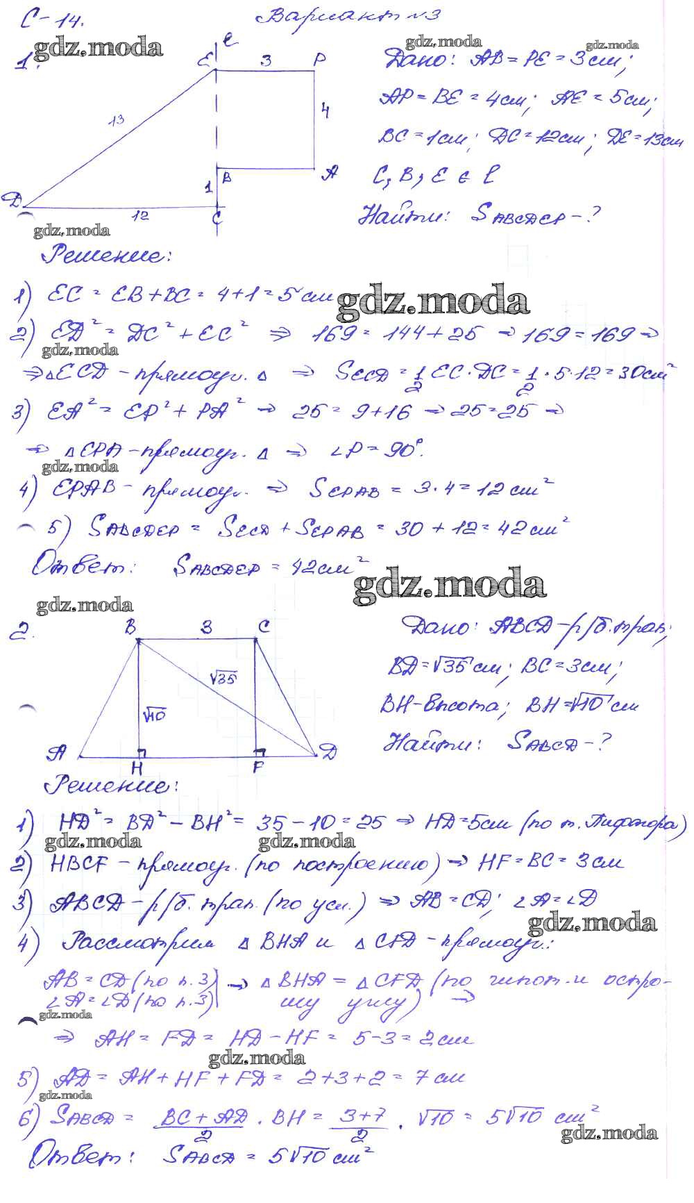 ГДЗ решение к заданию № вариант-3 Геометрия 8 класс Дидактические материалы Зив Б.Г. Просвещение 2016 ФГОС бесплатно на гдз.мода!