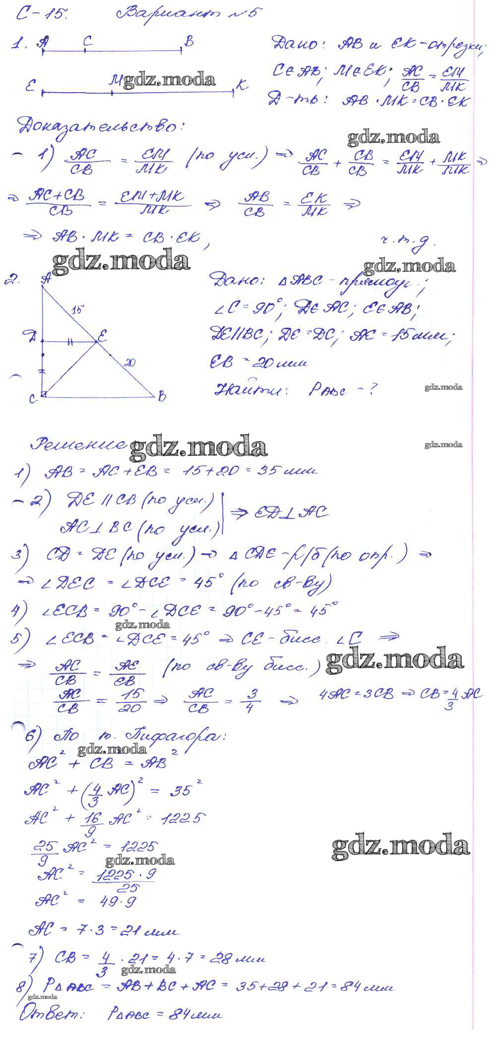 ГДЗ решение к заданию № вариант-5 Геометрия 8 класс Дидактические материалы Зив Б.Г. Просвещение 2016 ФГОС бесплатно на гдз.мода!