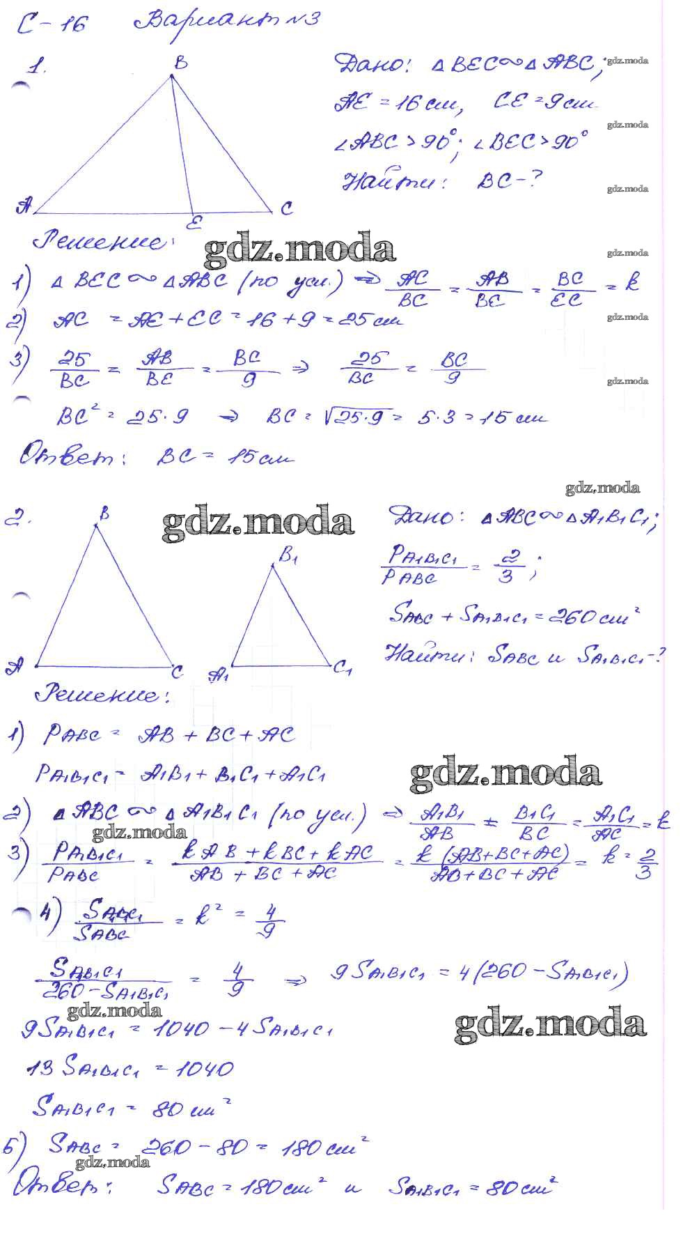 ГДЗ решение к заданию № вариант-3 Геометрия 8 класс Дидактические материалы Зив Б.Г. Просвещение 2016 ФГОС бесплатно на гдз.мода!