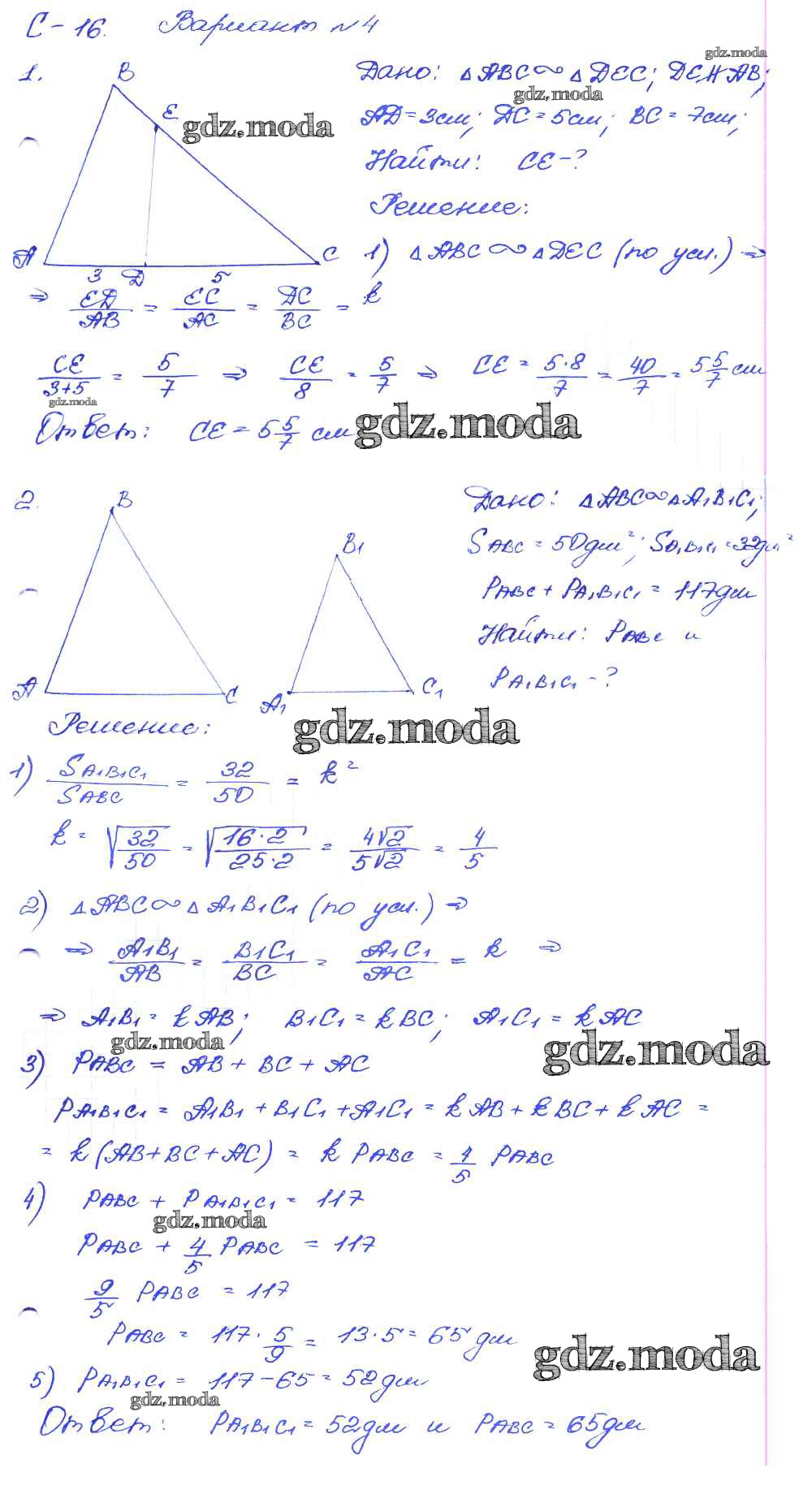 ГДЗ решение к заданию № вариант-4 Геометрия 8 класс Дидактические материалы Зив Б.Г. Просвещение 2016 ФГОС бесплатно на гдз.мода!