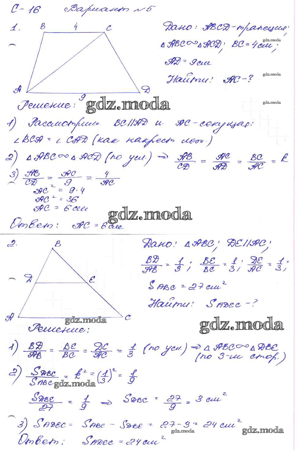 ГДЗ решение к заданию № вариант-5 Геометрия 8 класс Дидактические материалы Зив Б.Г. Просвещение 2016 ФГОС бесплатно на гдз.мода!