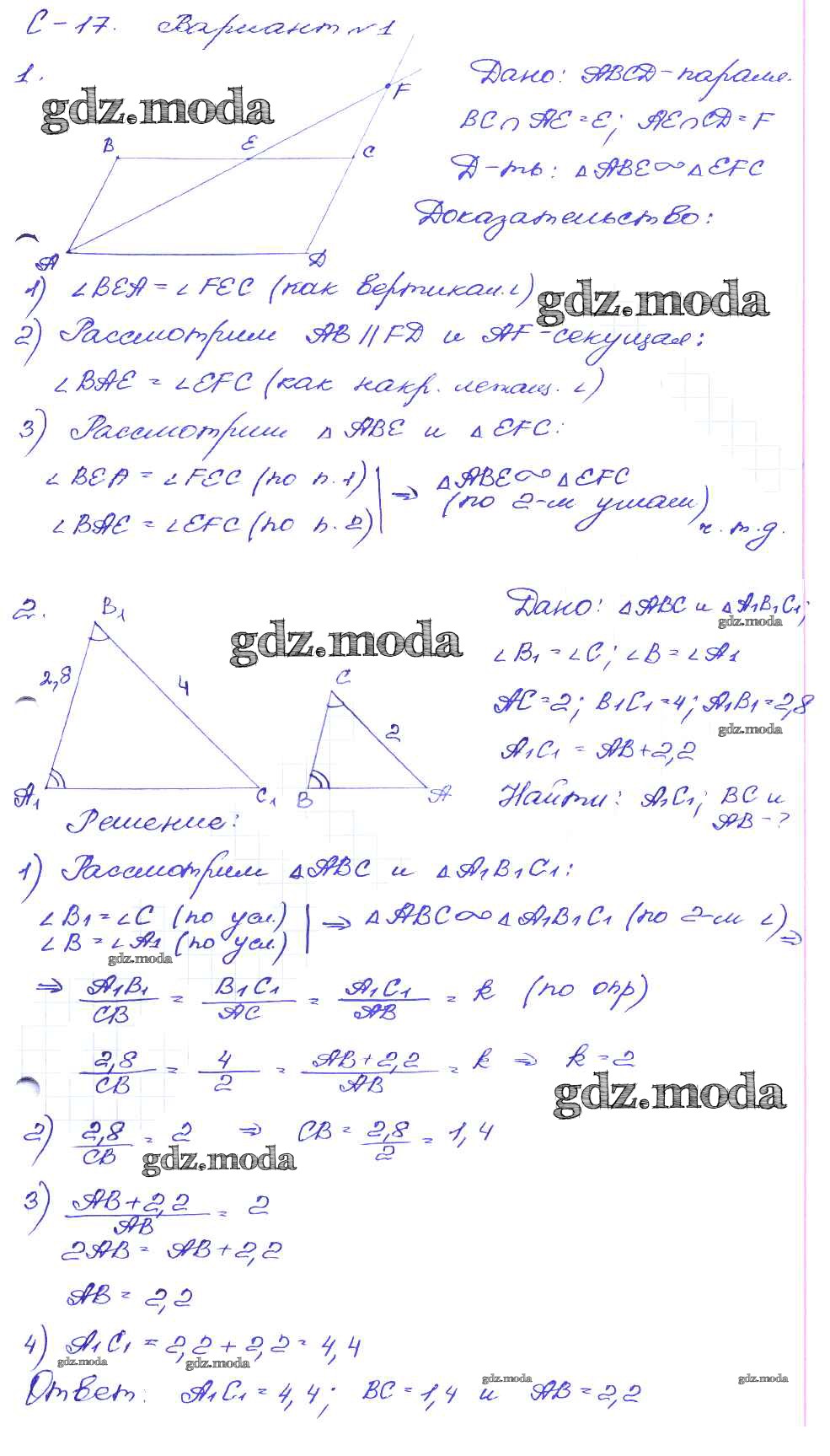 ГДЗ решение к заданию № вариант-1 Геометрия 8 класс Дидактические материалы Зив Б.Г. Просвещение 2016 ФГОС бесплатно на гдз.мода!