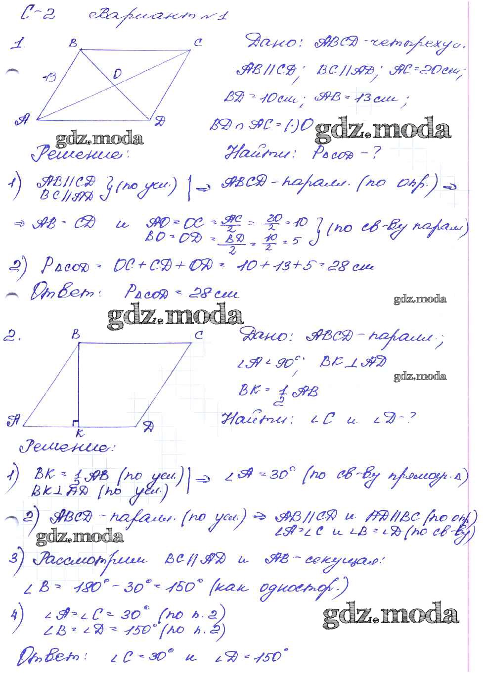 ОТВЕТ на задание № вариант-1 Дидактические материалы по Геометрии 8 класс Зив