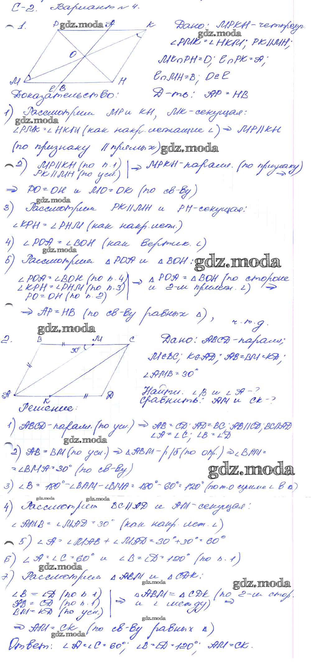 ГДЗ решение к заданию № вариант-4 Геометрия 8 класс Дидактические материалы Зив Б.Г. Просвещение 2016 ФГОС бесплатно на гдз.мода!