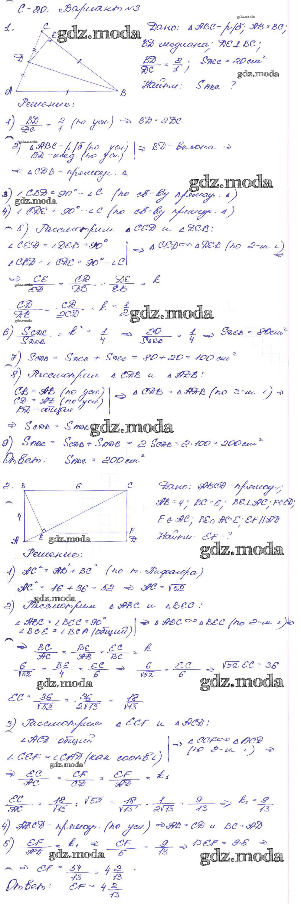 ГДЗ решение к заданию № вариант-3 Геометрия 8 класс Дидактические материалы Зив Б.Г. Просвещение 2016 ФГОС бесплатно на гдз.мода!