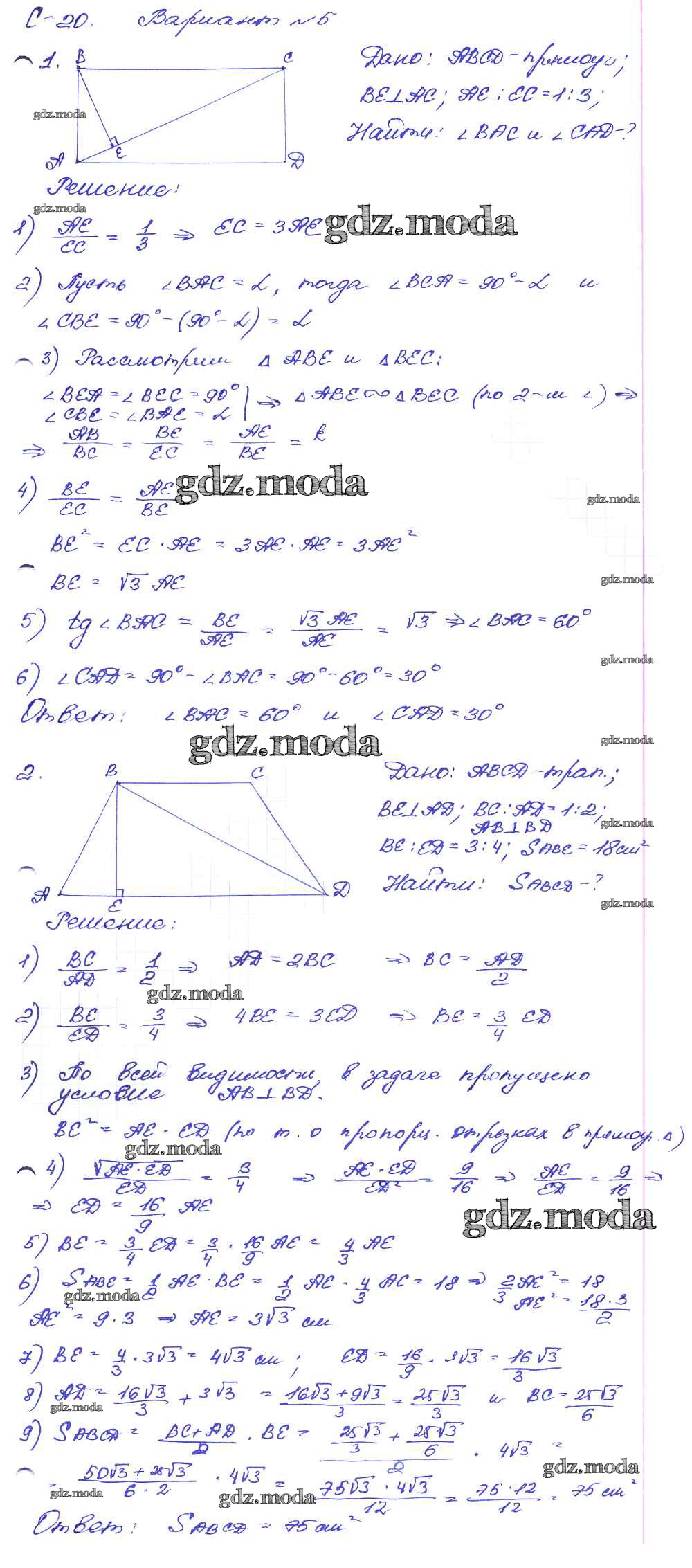 ГДЗ решение к заданию № вариант-5 Геометрия 8 класс Дидактические материалы Зив Б.Г. Просвещение 2016 ФГОС бесплатно на гдз.мода!