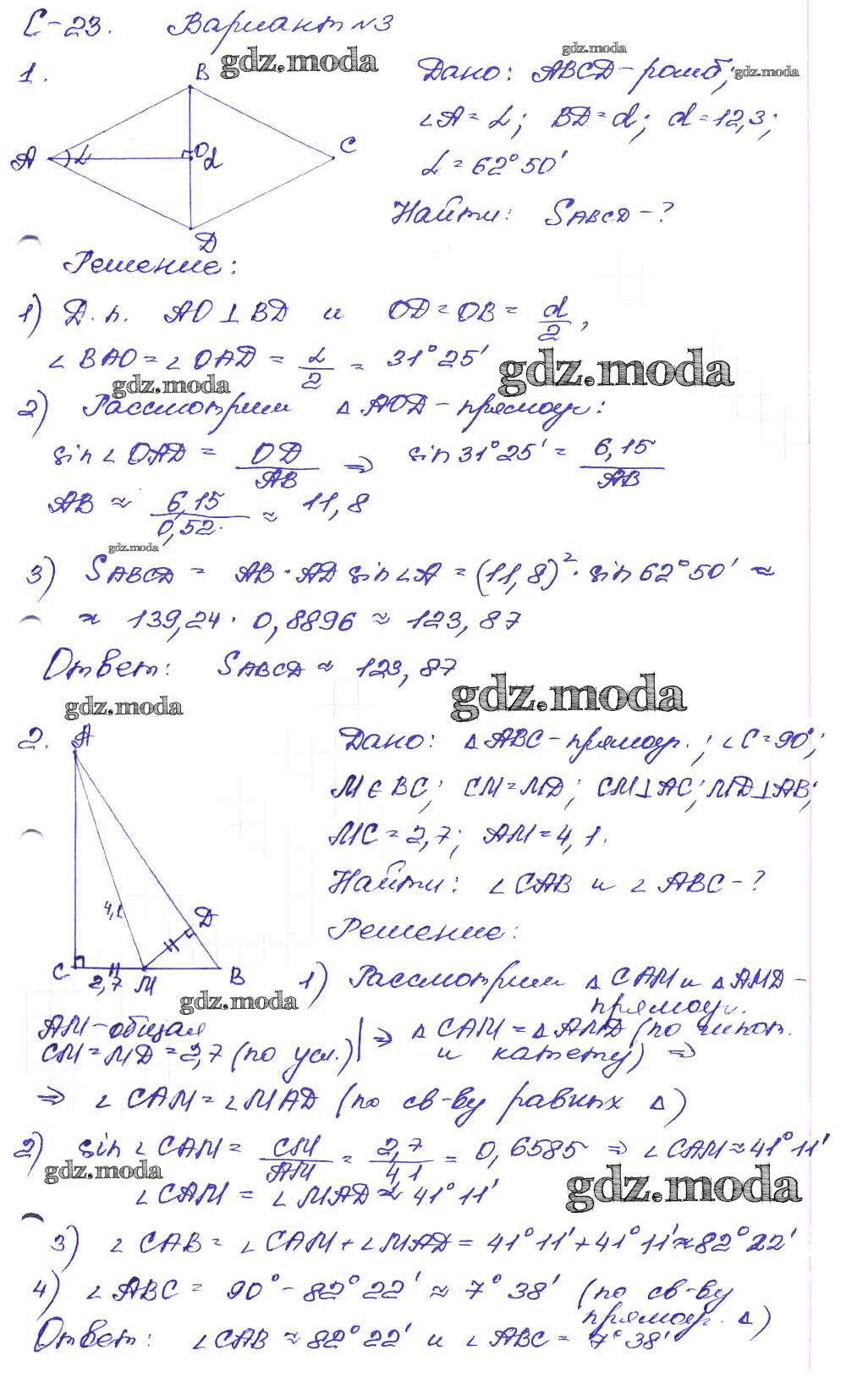 ГДЗ решение к заданию № вариант-3 Геометрия 8 класс Дидактические материалы Зив Б.Г. Просвещение 2016 ФГОС бесплатно на гдз.мода!