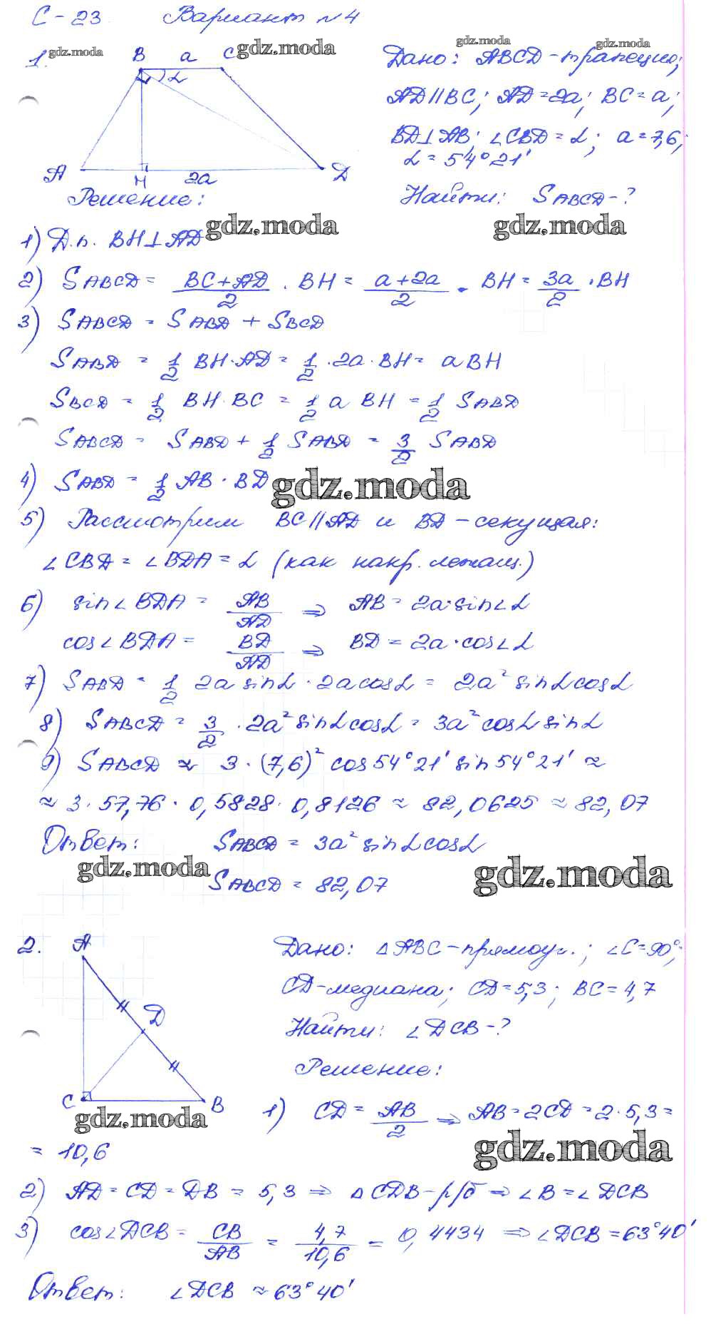 ГДЗ решение к заданию № вариант-4 Геометрия 8 класс Дидактические материалы Зив Б.Г. Просвещение 2016 ФГОС бесплатно на гдз.мода!